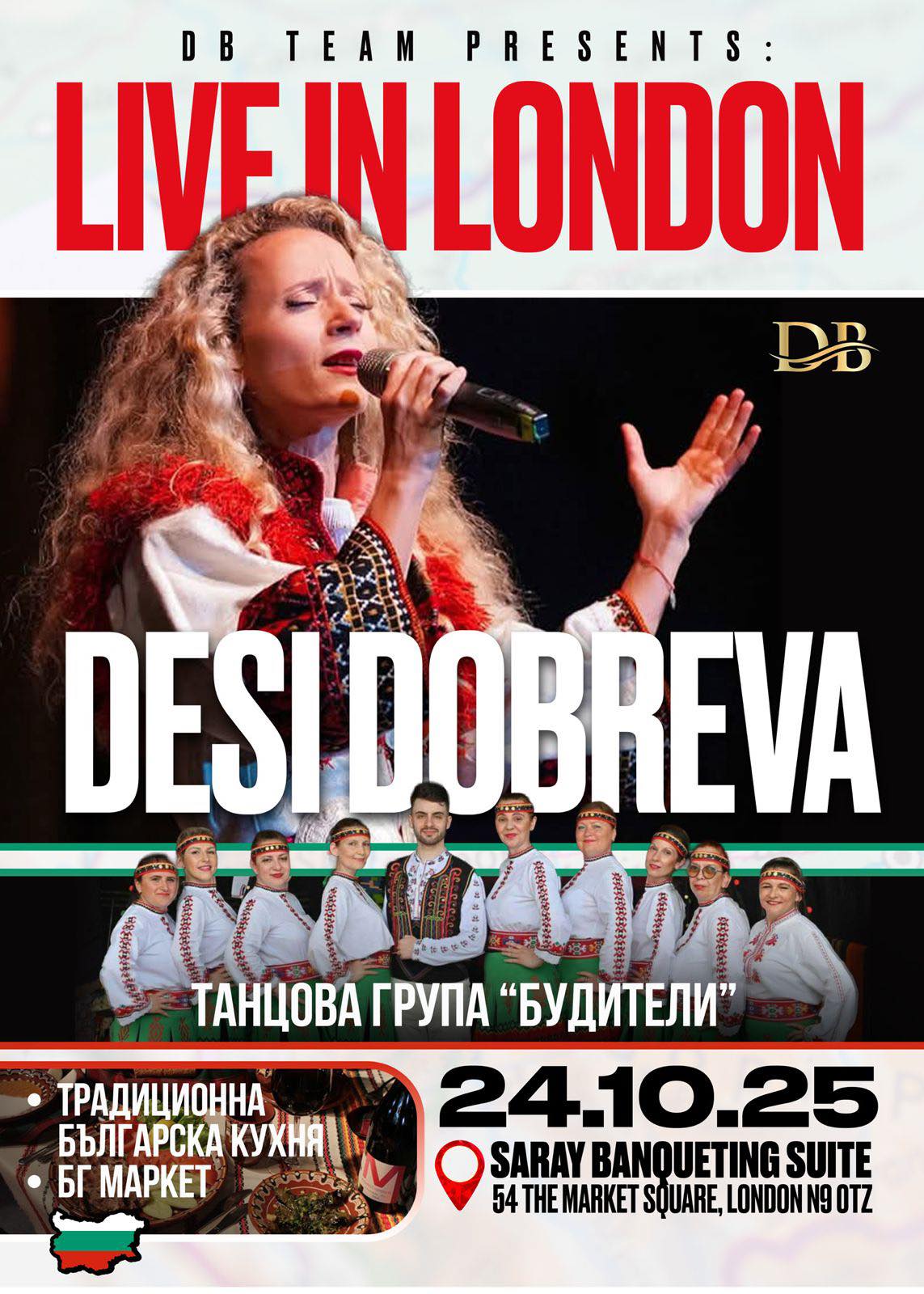 Известната певица Деси Добрева ще гостува в Лондон на 24 октомври.