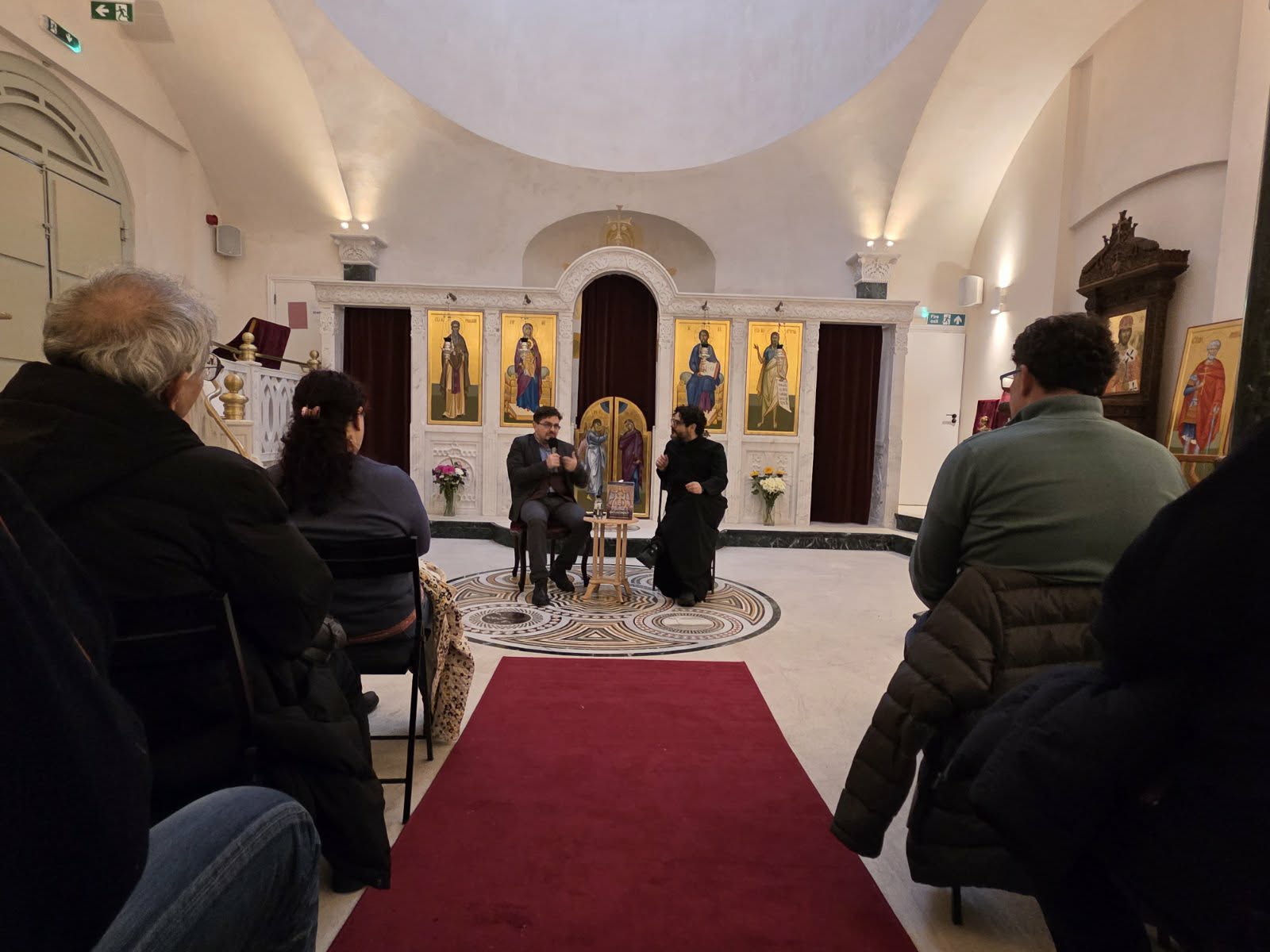 След лекцията се проведе оживена дискусия с въпроси относно влиянието на св. патриарх Фотий върху Кирило-Методиевата мисия сред славяните, писмата до св. цар Борис-Михаил, догматичните основания на иконопочитанието, монашеството и основаването на Света гора – Атон.