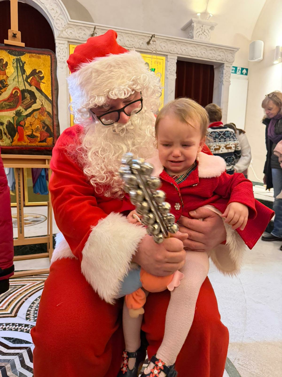Българският храм беше изпълнен с усмивки, вяра и надежда за по-добри дни. След литургията, която беше отслужена от отец Добромир, емоциите придобиха истински празничен заряд с тържествения концерт на децата, които посещават неделното училище към храма. Специално за децата в църквата пристигна и Дядо Коледа, който обърна специално внимание на най-малките.