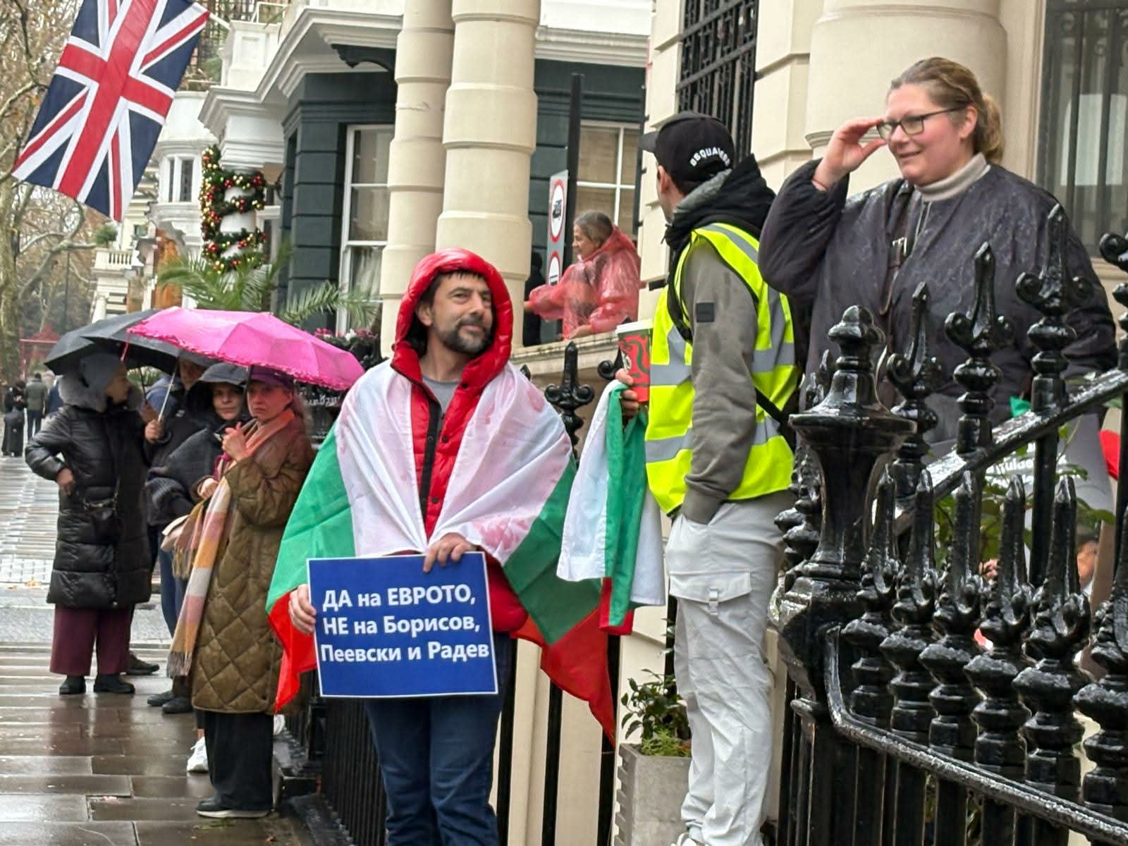 Пред българското посолство в британската столица се събраха наши сънародници, които милеят за родината и искат да се сложи край на корупцията. Някои от тях бяха дошли с малките си деца, независимо от лошите метеорологични условия. Протестиращите носеха български знамена и споделяха, че е крайно време нещата в България да се променят.