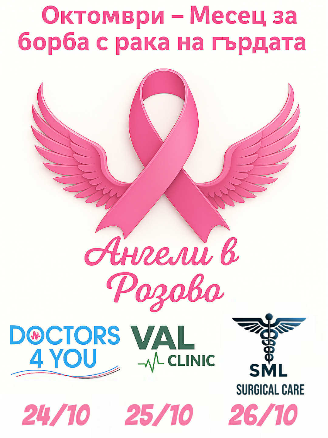 Тази година Doctors4You, Val Clinic и SML Surgical Care обединяват усилия в подкрепа на инициативата „Ангели в розово“, за да дадат възможност на повече жени да получат навременен и качествен профилактичен преглед.